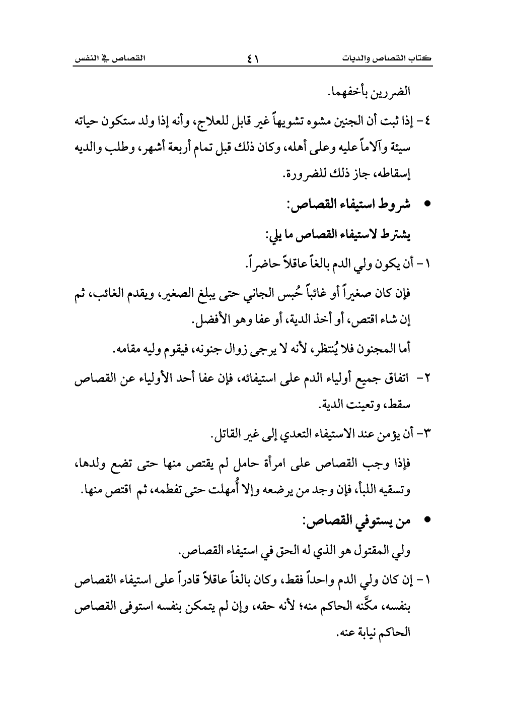 يشترط لاستيفاء القصاص ما يلي: