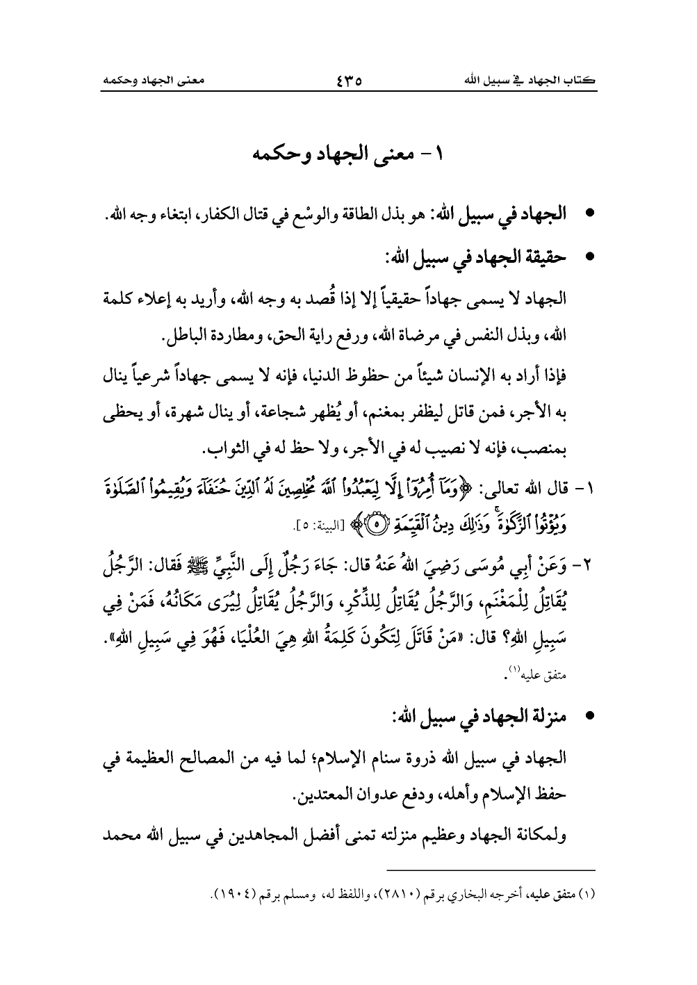 · منزلة الجهاد في سبيل الله: