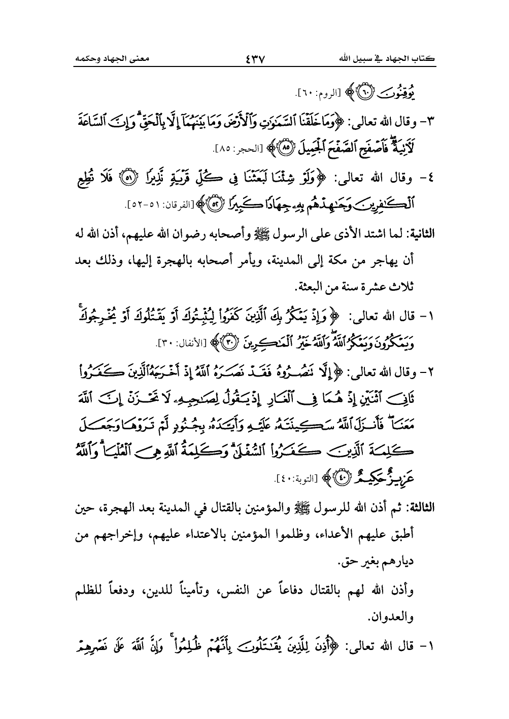 1 - قال الله تعالى: {أُذِنَ لِلَّذِينَ يُقَاتَلُونَ بِأَنَّهُمْ ظُلِمُوا وَإِنَّ اللَّهَ عَلَى نَصْرِهِمْ