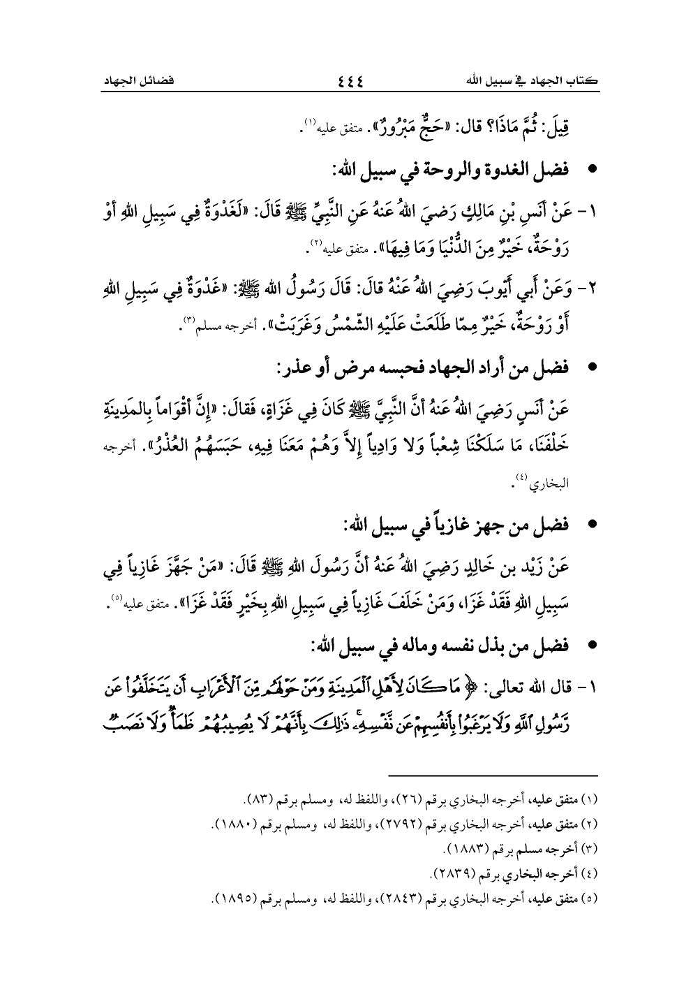 - فضل الغدوة والروحة في سبيل الله: