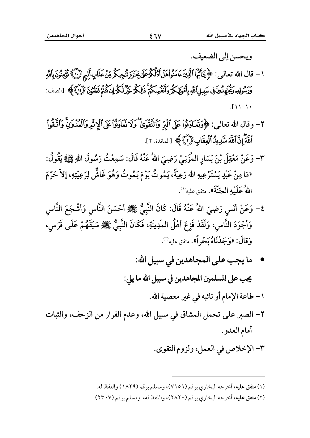 يجب على المسلمين المجاهدين في سبيل الله ما يلي: