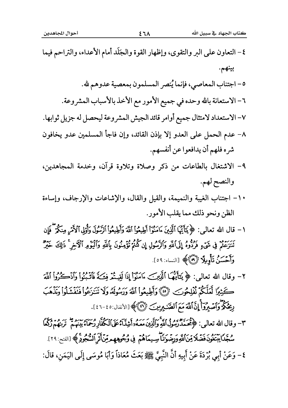7 - الاستعداد لامتثال جميع أوامر قائد الجيش المشروعة ليحصل له جزيل ثوابها.