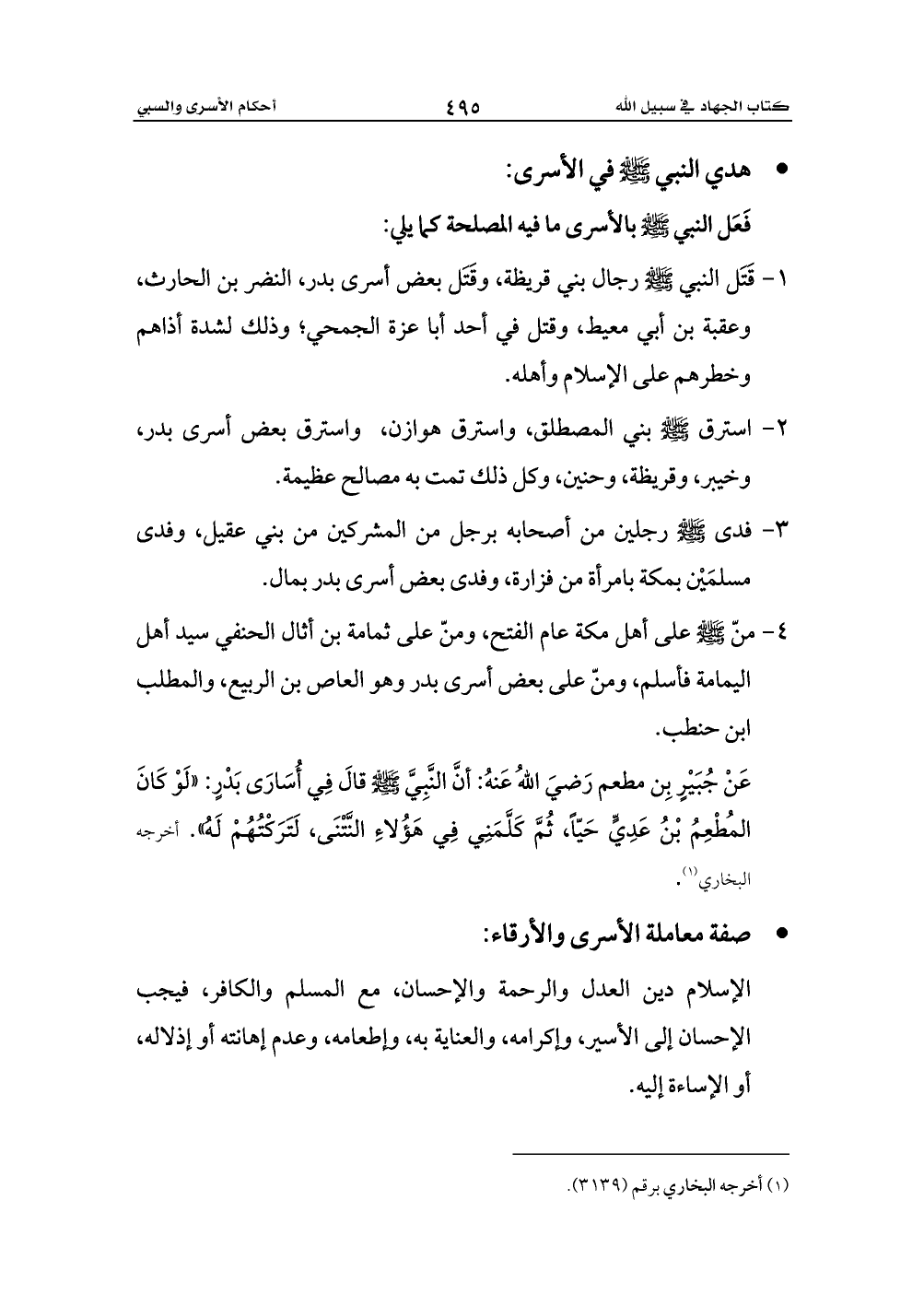 - هدي النبي - صلى الله عليه وسلم - في الأسرى: