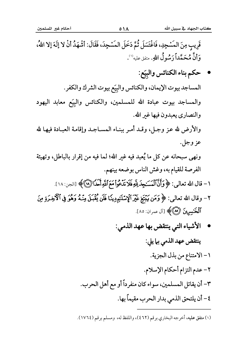 المساجد بيوت الإيمان، والكنائس والبِيَع بيوت الشرك والكفر.