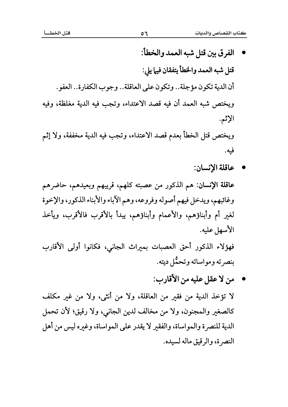 أن الدية تكون مؤجلة .. وتكون على العاقلة .. وجوب الكفارة .. العفو.