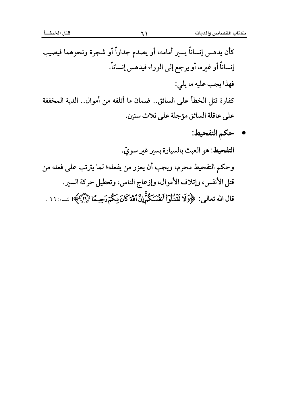 كفارة قتل الخطأ على السائق .. ضمان ما أتلفه من أموال .. الدية المخففة على عاقلة السائق مؤجلة على ثلاث سنين.