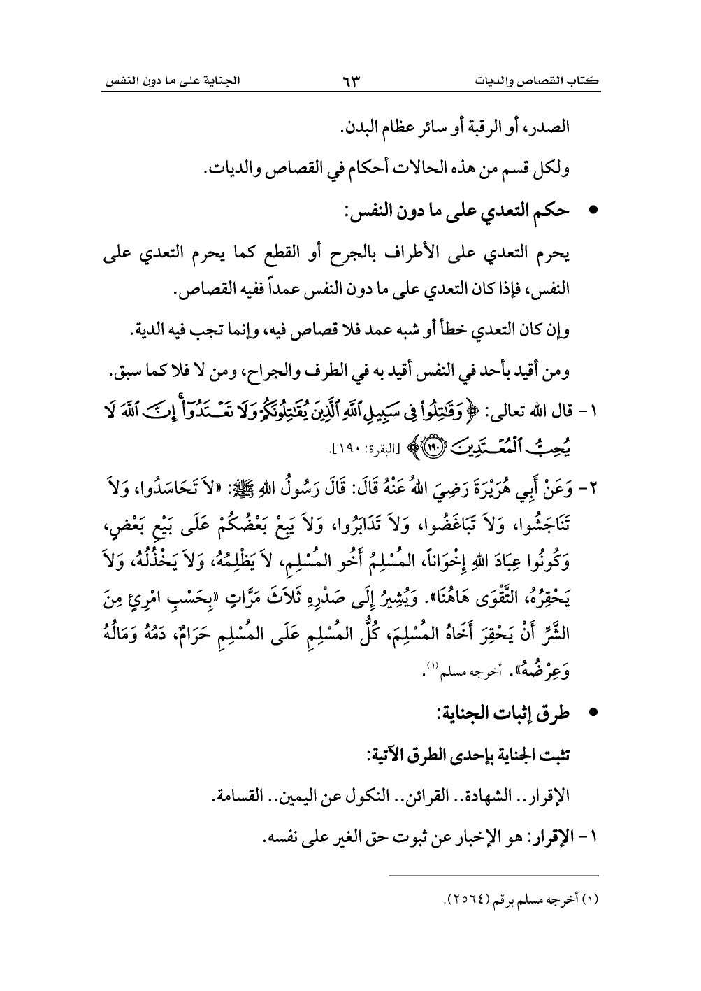 يحرم التعدي على الأطراف بالجرح أو القطع كما يحرم التعدي على النفس، فإذا كان التعدي على ما دون النفس عمداً ففيه القصاص.
