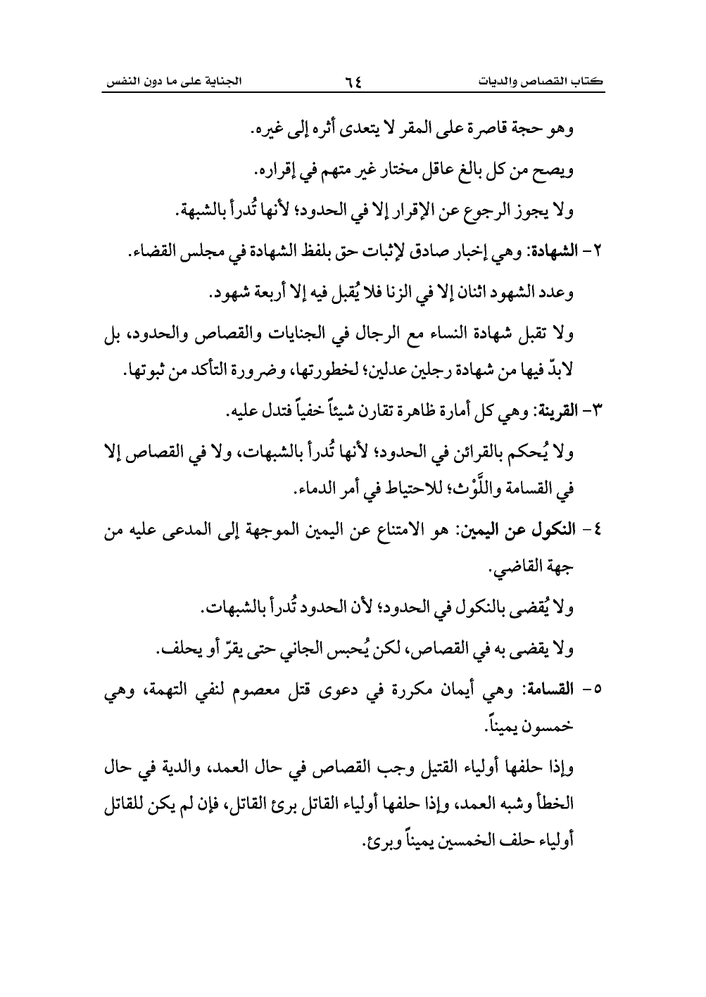 5 - القسامة: وهي أيمان مكررة في دعوى قتل معصوم لنفي التهمة، وهي خمسون يميناً.