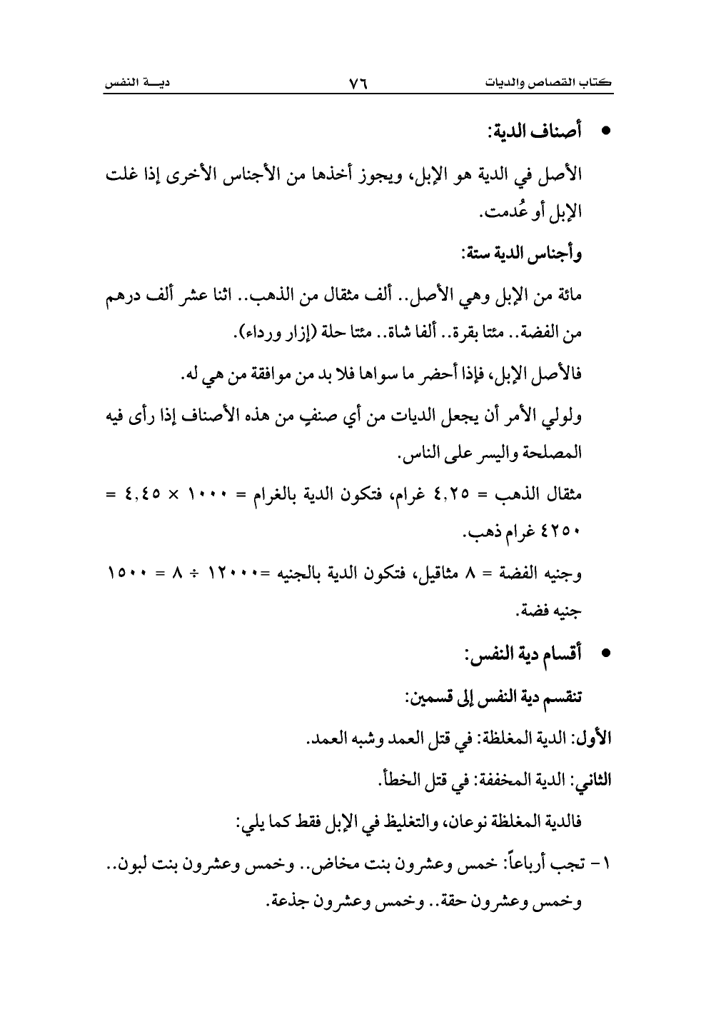 الأصل في الدية هو الإبل، ويجوز أخذها من الأجناس الأخرى إذا غلت الإبل أو عُدمت.