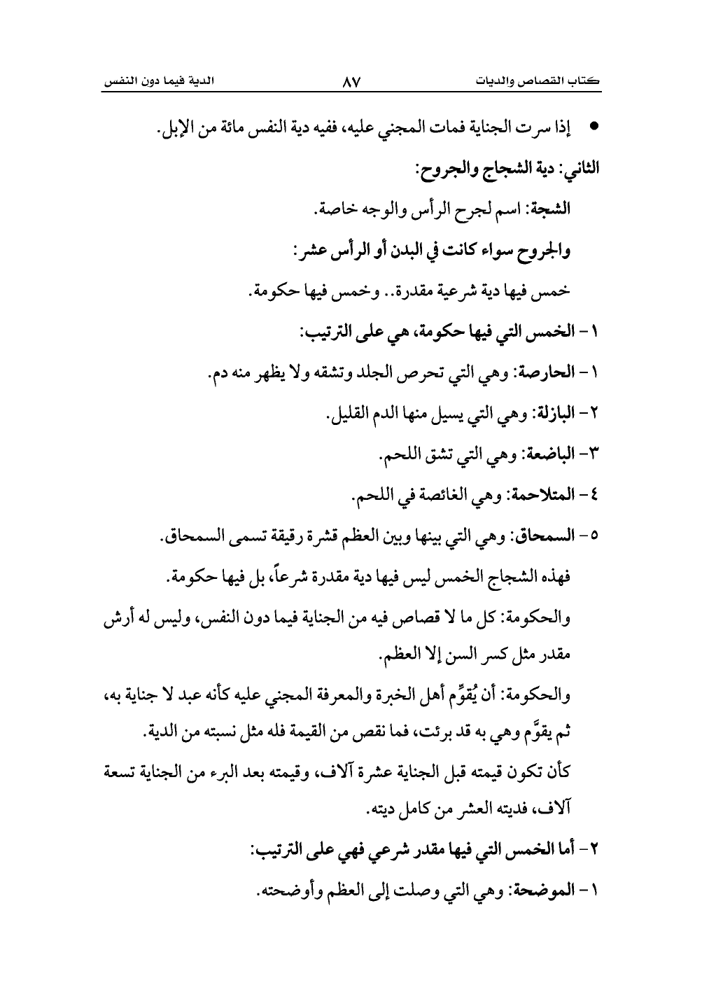 فهذه الشجاج الخمس ليس فيها دية مقدرة شرعاً، بل فيها حكومة.