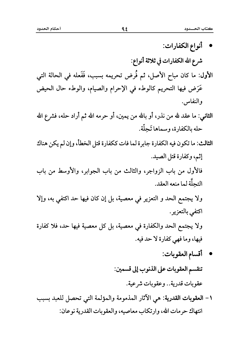 1 - العقوبات القدرية: هي الآثار المذمومة والمؤلمة التي تحصل للعبد بسبب انتهاك حرمات الله، وارتكاب معاصيه، والعقوبات القدرية نوعان: