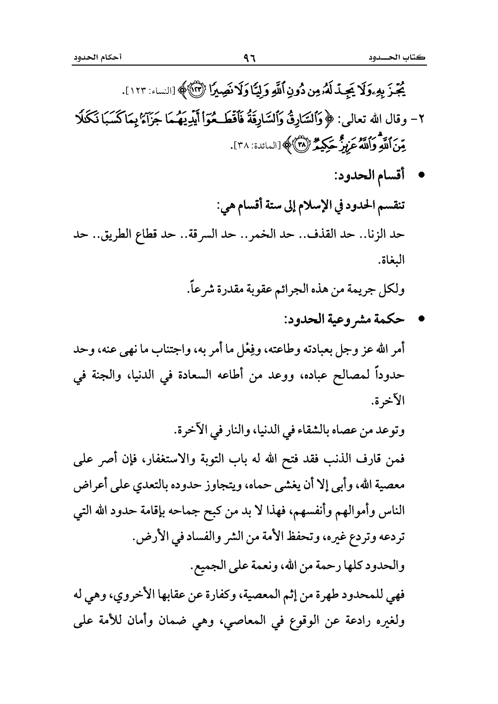 حد الزنا .. حد القذف .. حد الخمر .. حد السرقة .. حد قطاع الطريق .. حد البغاة.