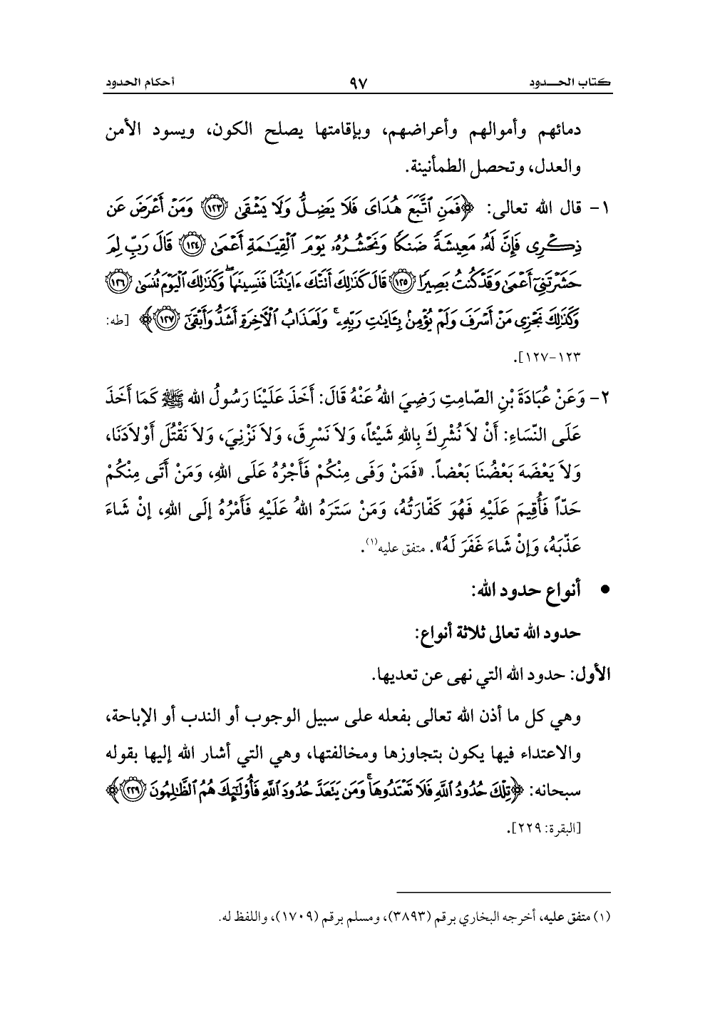 حدود الله تعالى ثلاثة أنواع: