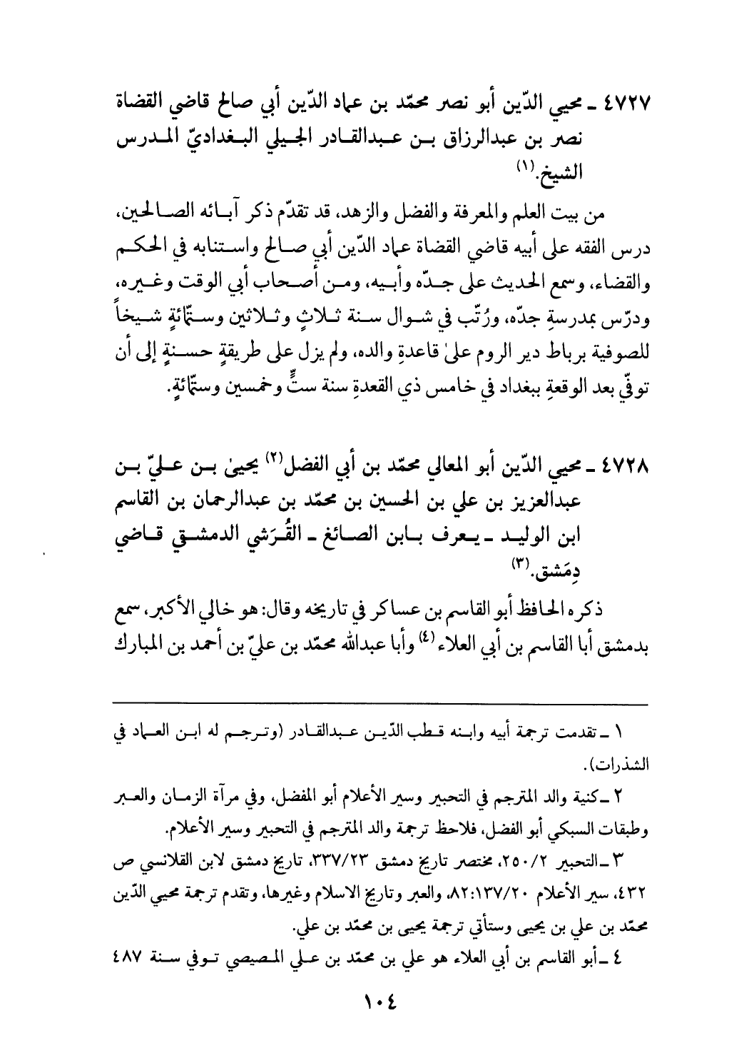 4728 - محيي الدّين أبو المعالي محمّد بن أبي الفضل (¬2) يحيى بن عليّ بن