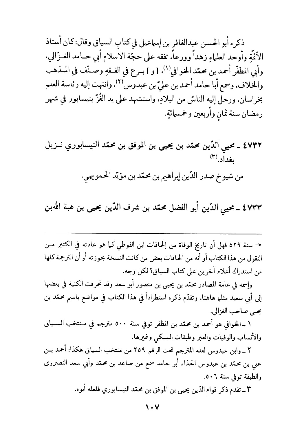 (¬1) الخوافي هو أحمد بن محمّد بن المظفر توفي سنة 500 مترجم في منتخب السياق والأنساب والوفيات والعبر وطبقات السبكي وغيرها.