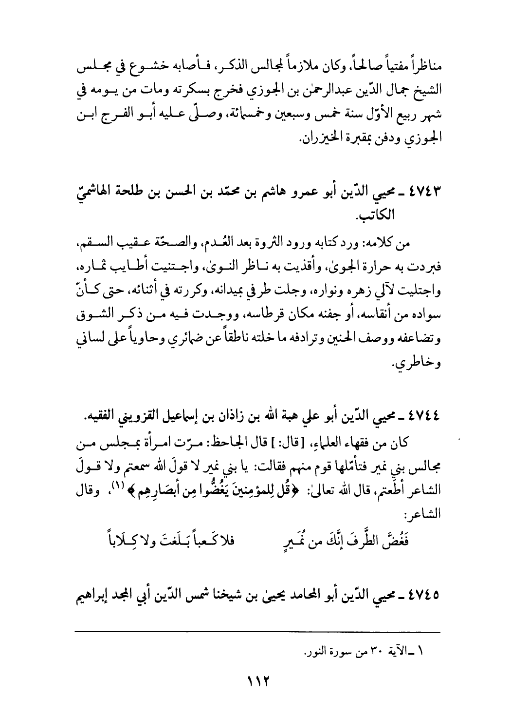 4743 - محيي الدّين أبو عمرو هاشم بن محمّد بن الحسن بن طلحة الهاشميّ
