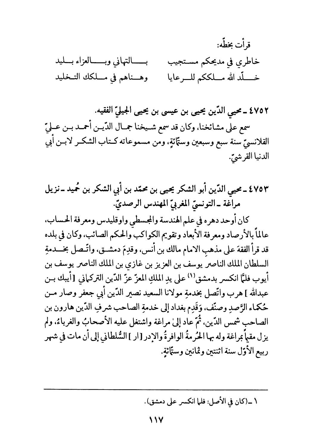 4753 - محيي الدّين أبو الشكر يحيى بن محمّد بن أبي الشكر بن حميد - نزيل