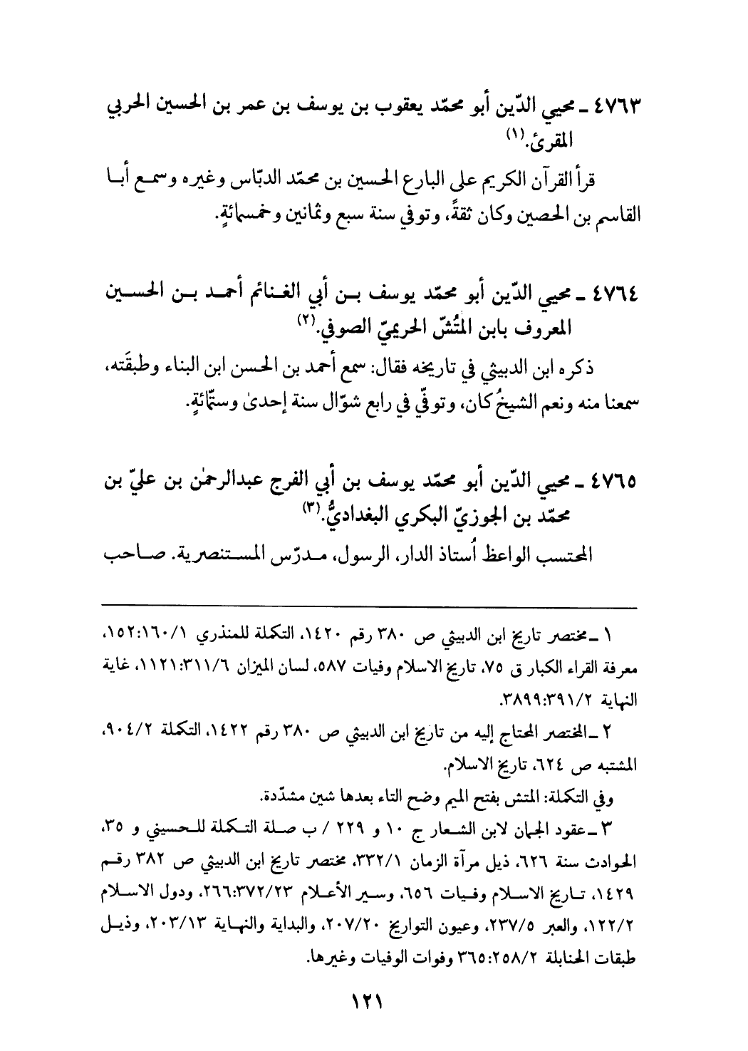 4763 - محيي الدّين أبو محمّد يعقوب بن يوسف بن عمر بن الحسين الحربي