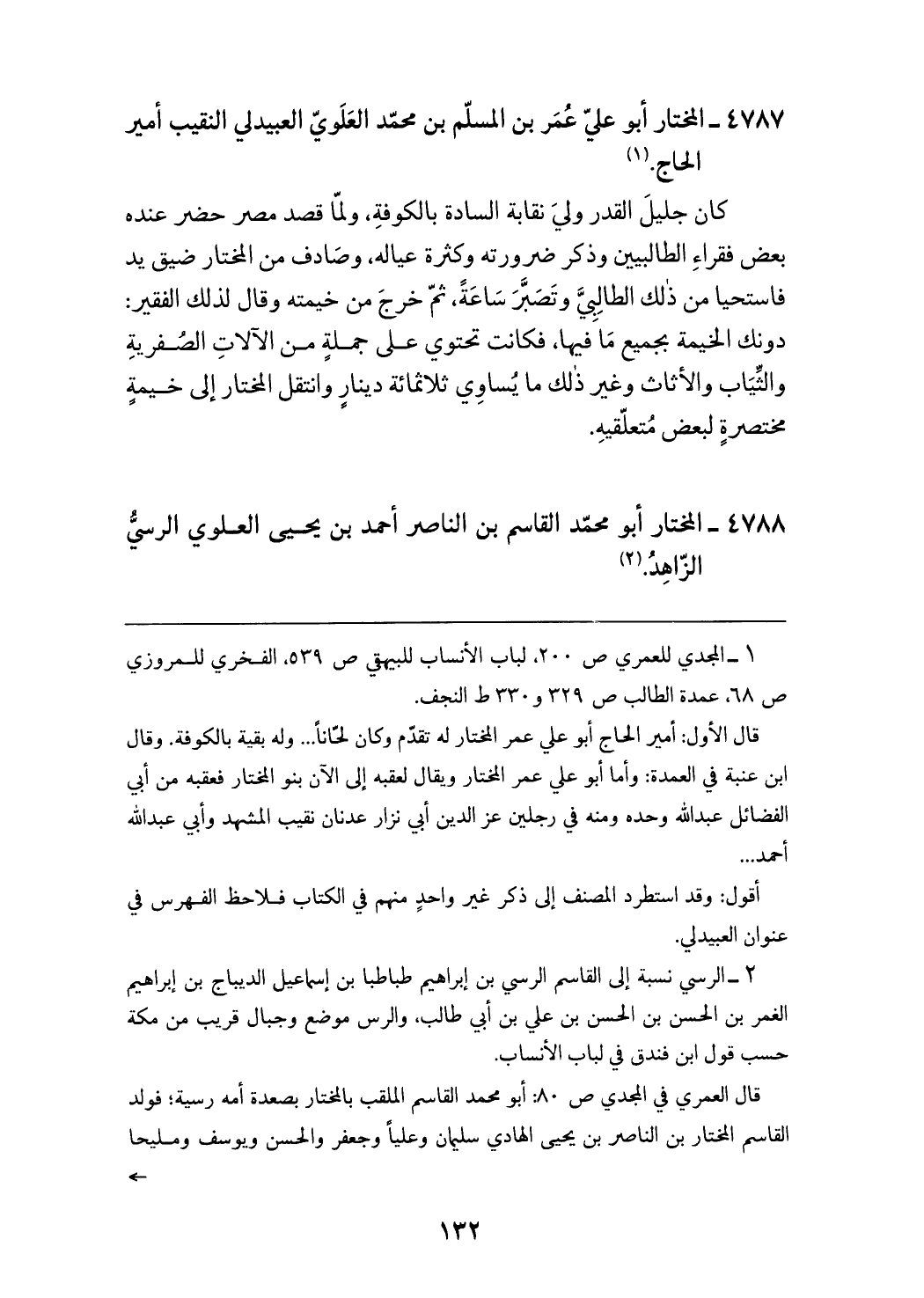 4787 - المختار أبو عليّ عمر بن المسلّم بن محمّد العلويّ العبيد لي النقيب أمير