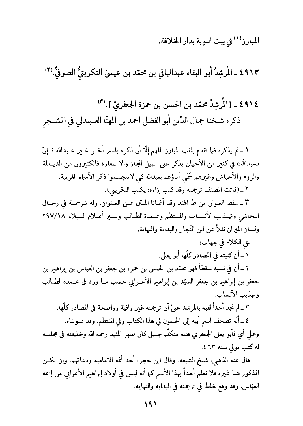 4913 - المرشد أبو البقاء عبد الباقي بن محمّد بن عيسى التكريتيّ الصوفيّ. (¬2)