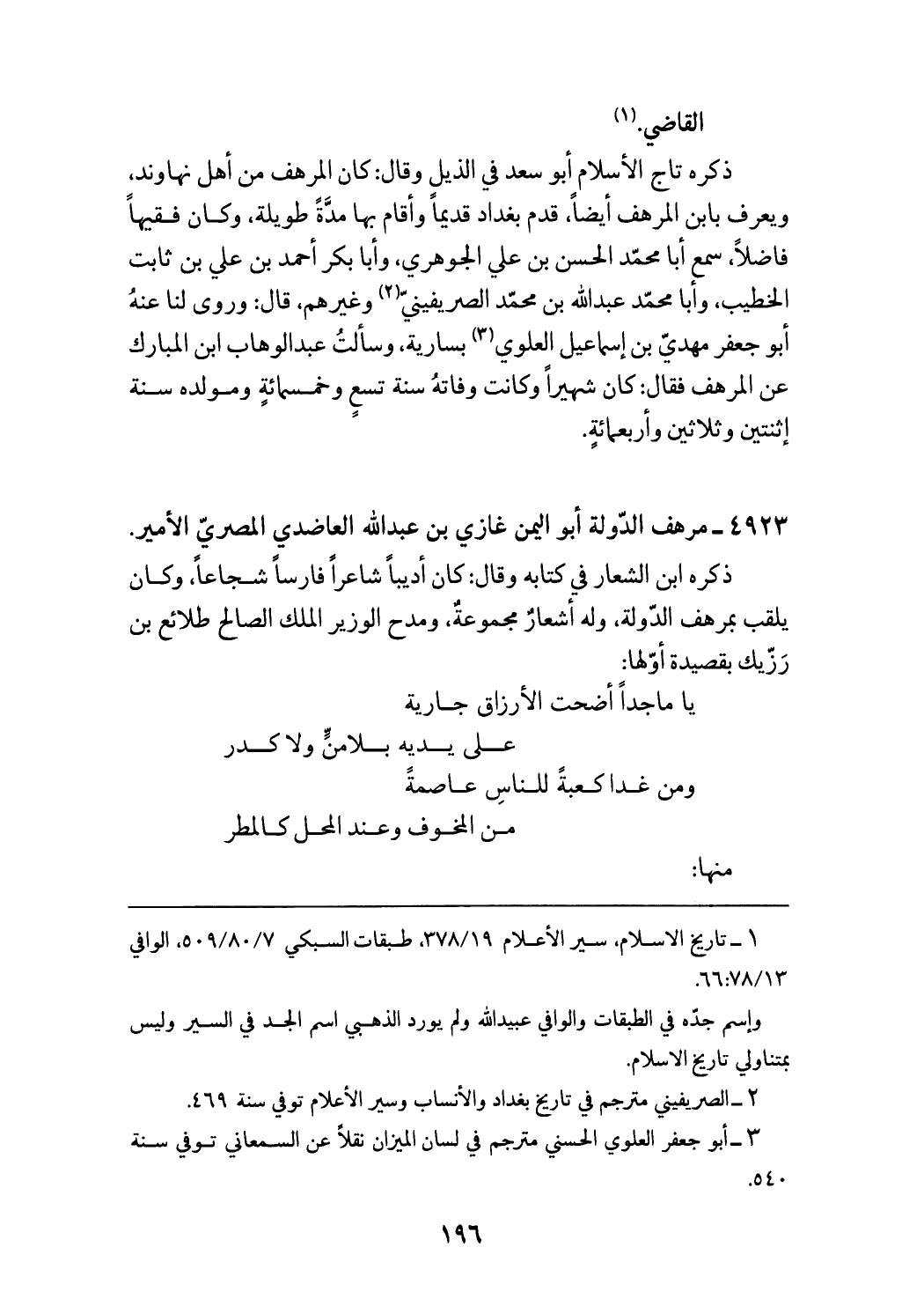 (¬2) الصريفيني مترجم في تاريخ بغداد والأنساب وسير الأعلام توفي سنة 469.