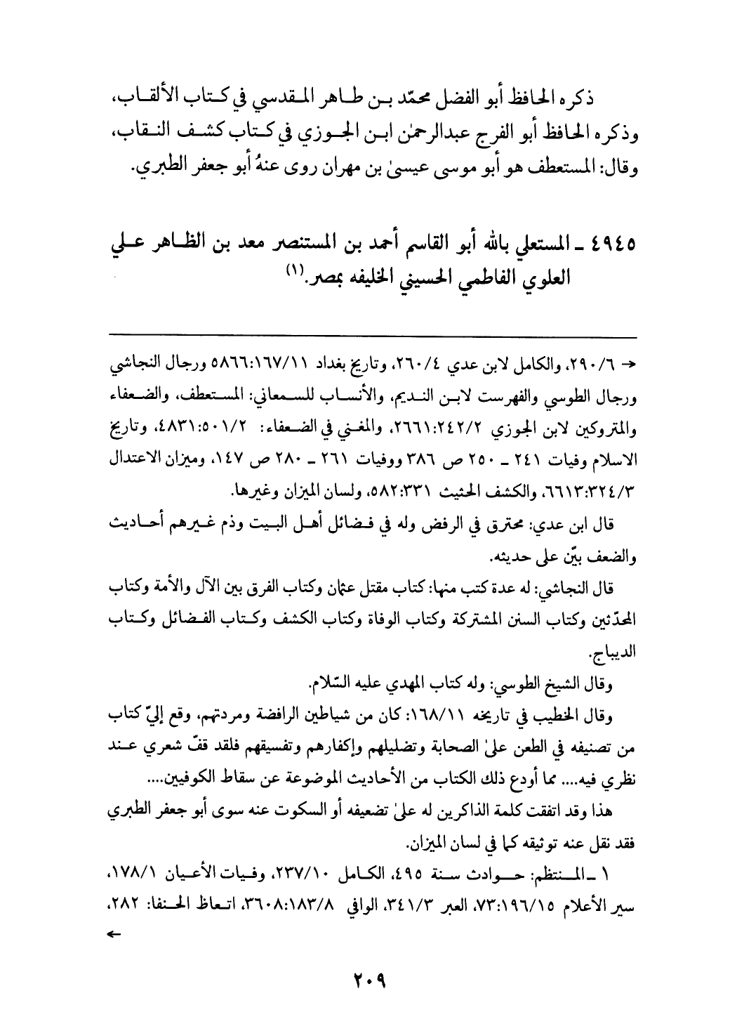 4945 - المستعلي بالله أبو القاسم أحمد بن المستنصر معد بن الظاهر علي العلوي الفاطمي الحسيني الخليفة بمصر. (¬1)
