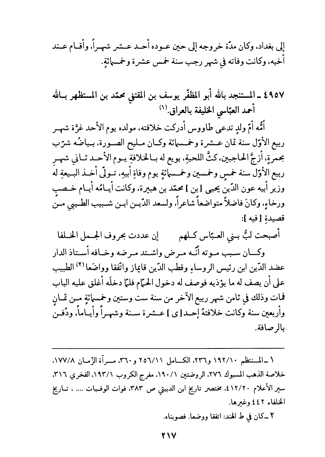 4957 - المستنجد بالله أبو المظفّر يوسف بن المقتفي محمّد بن المستظهر بالله