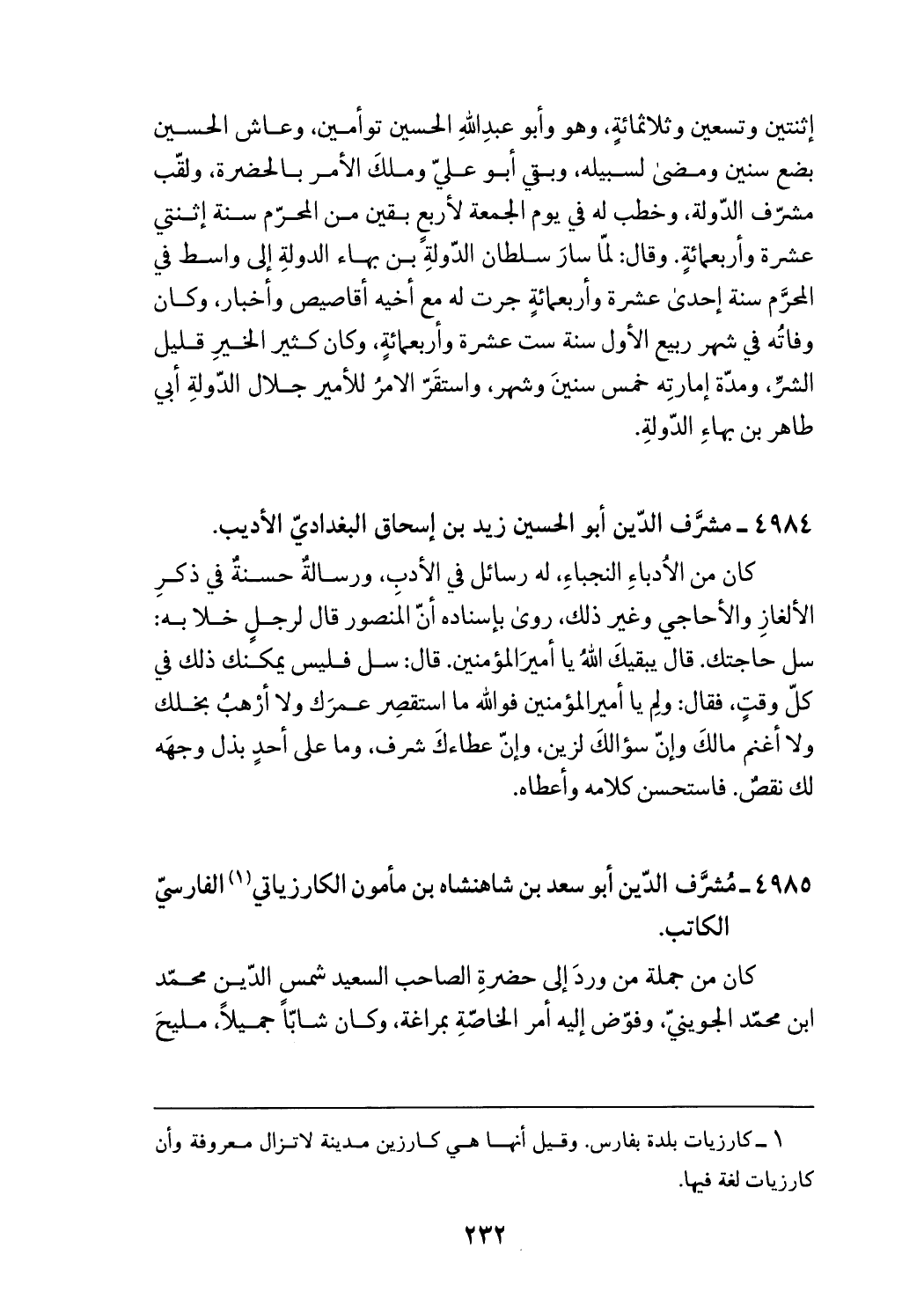 4985 - مشرّف الدّين أبو سعد بن شاهنشاه بن مأمون الكارزياتي (¬1) الفارسيّ
