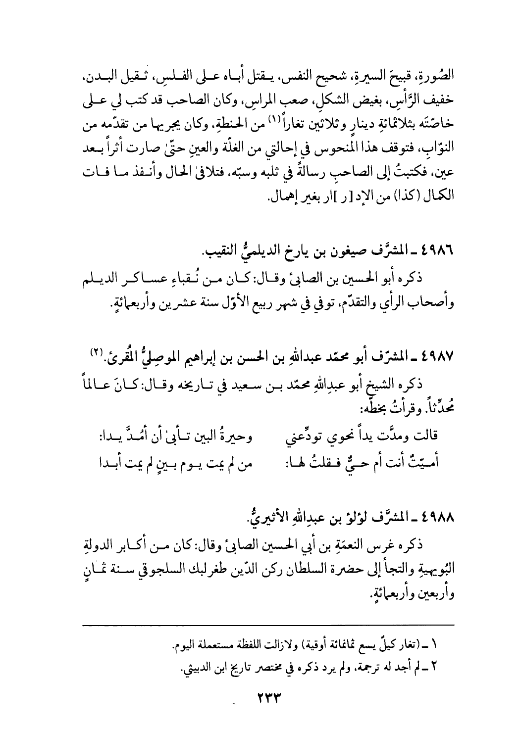 4986 - المشرّف صيغون بن يارخ الديلميّ النقيب.