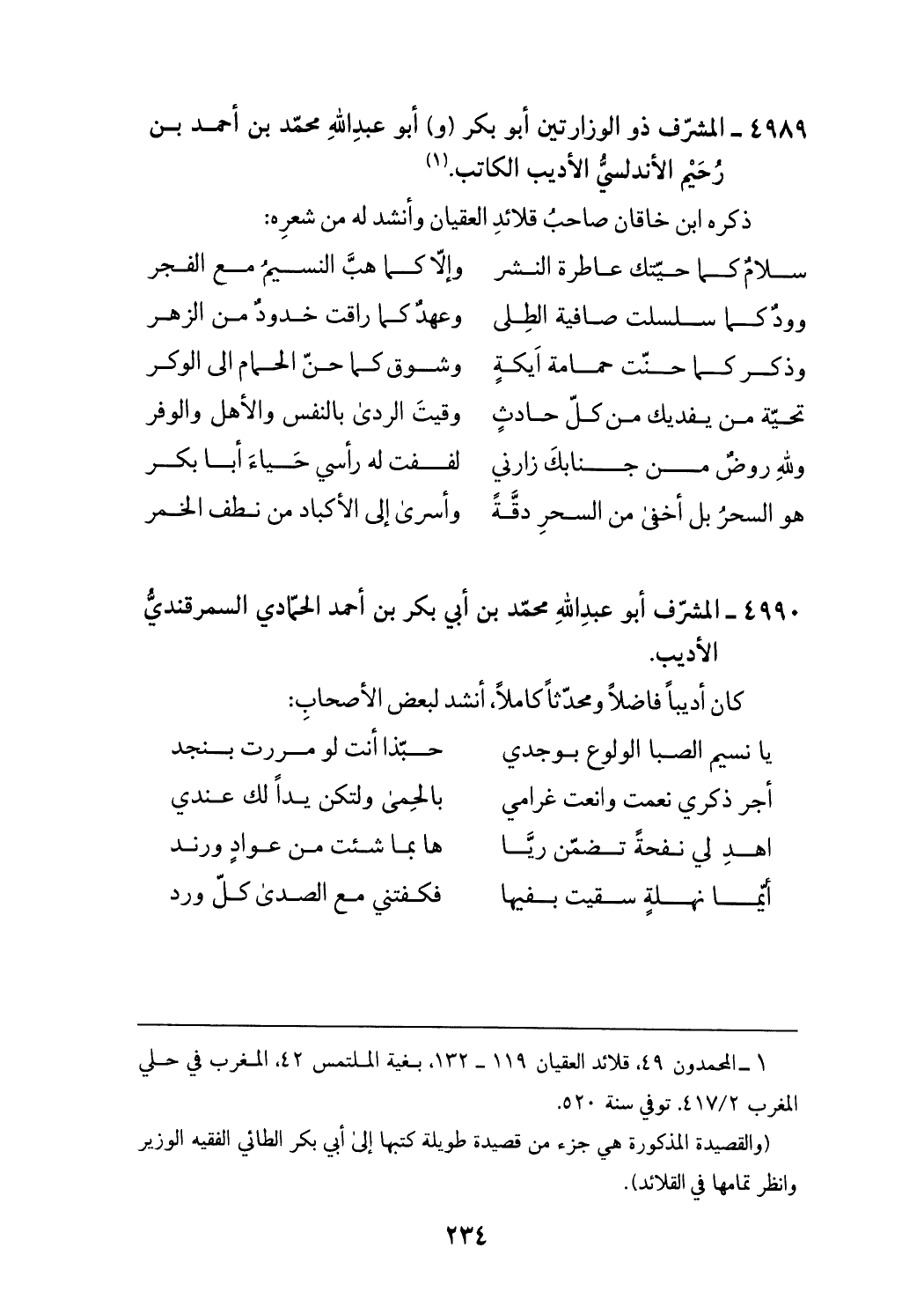 (¬1) المحمدون 49، قلائد العقيان 119 - 132، بغية الملتمس 42، المغرب في حلي المغرب 417/ 2.توفي سنة 520. (والقصيدة المذكورة هي جزء من قصيدة طويلة كتبها إلى أبي بكر الطائي الفقيه الوزير وانظر تمامها في القلائد).