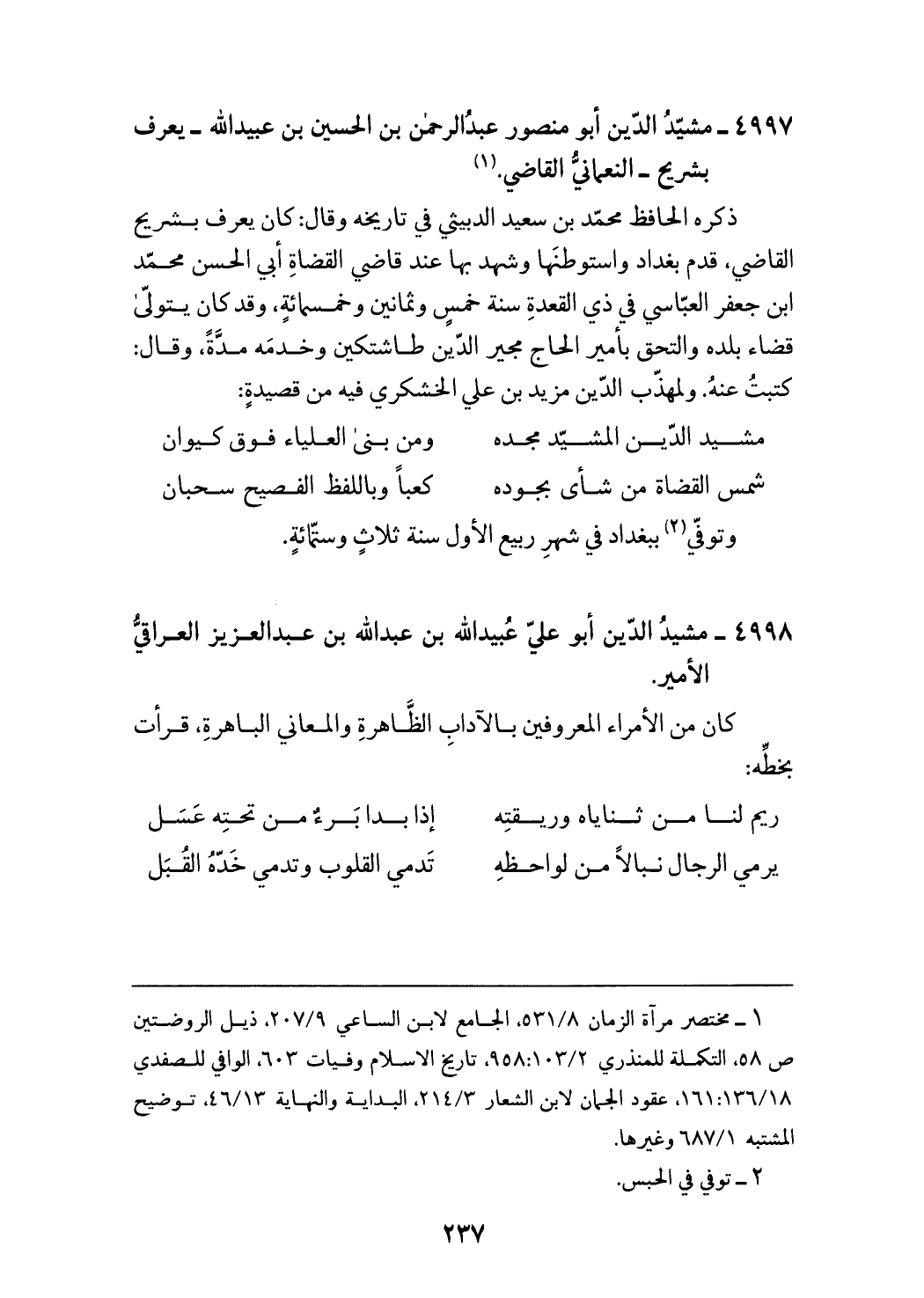 4998 - مشيد الدّين أبو عليّ عبيد الله بن عبد الله بن عبد العزيز العراقيّ