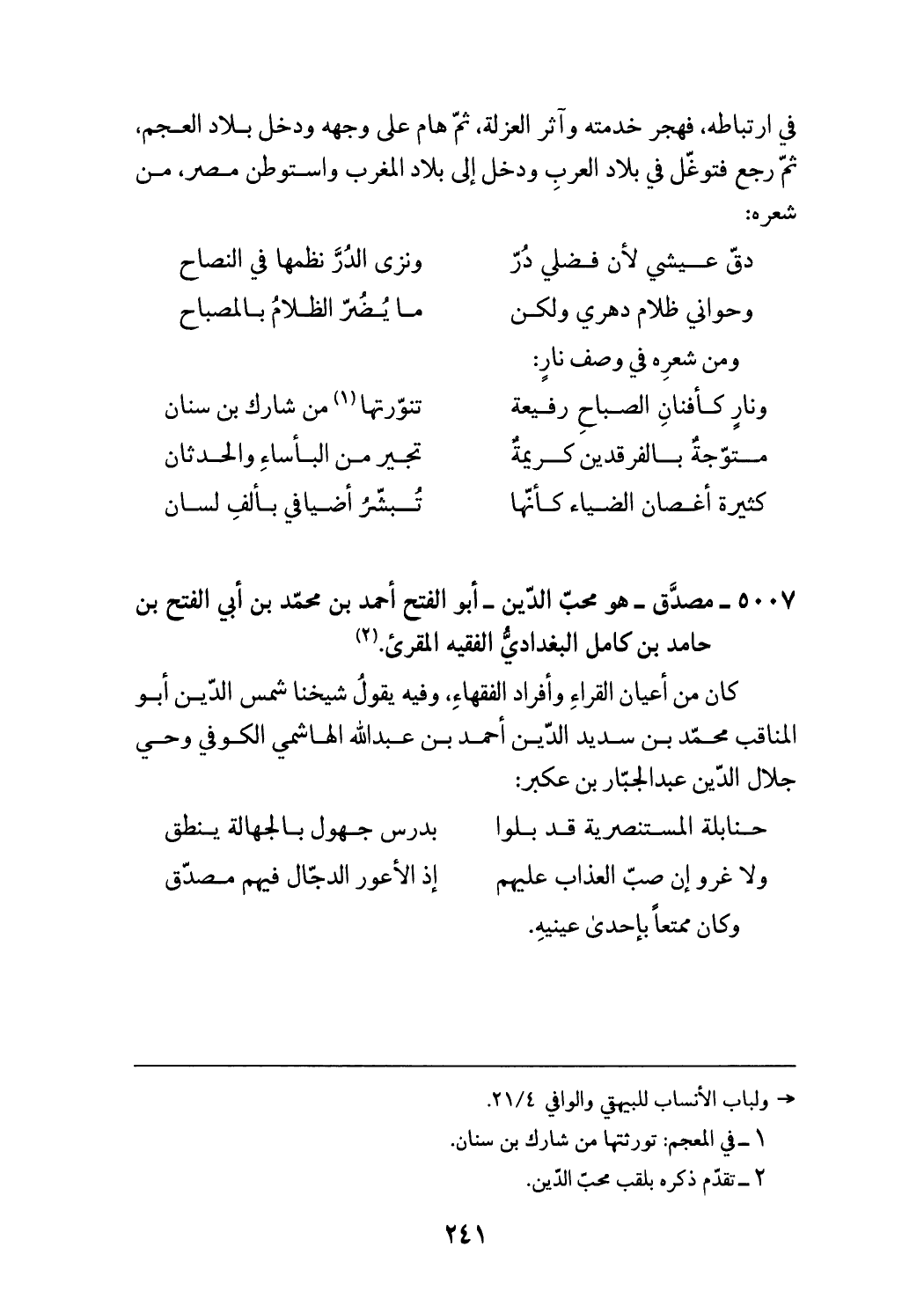 = ولباب الأنساب للبيهقي والوافي 21/ 4.