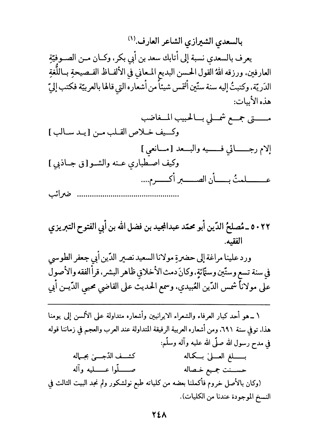 بالسعدي الشيرازي الشاعر العارف. (¬1)