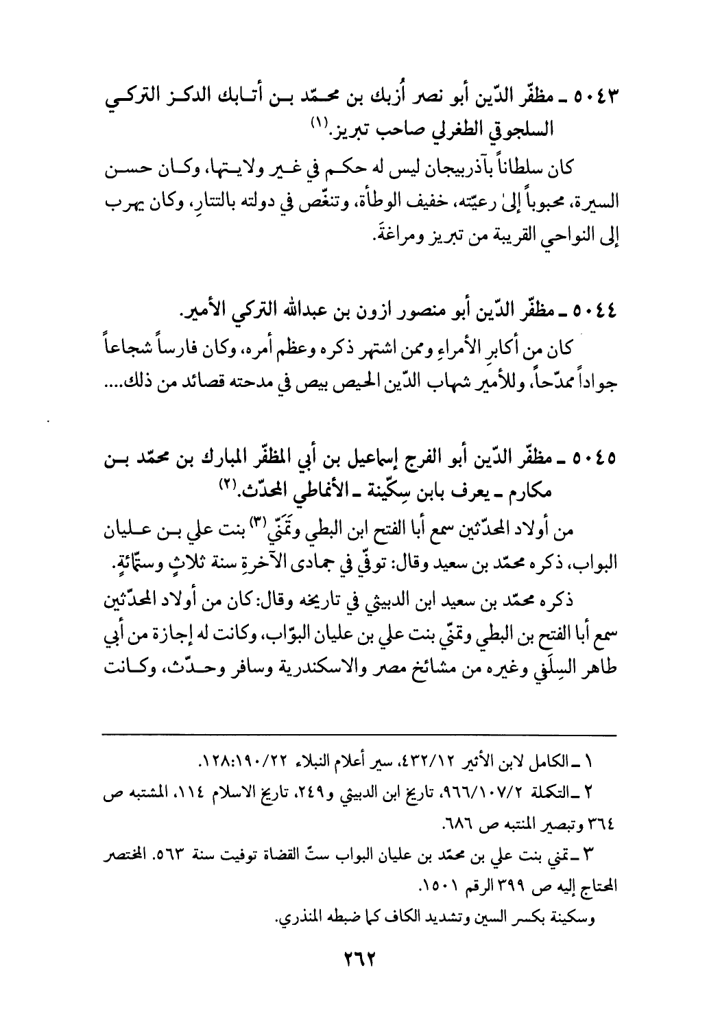 (¬3) تمني بنت علي بن محمّد بن عليان البواب ستّ القضاة توفيت سنة 563.المختصر المحتاج إليه ص 399 الرقم 1501. وسكينة بكسر السين وتشديد الكاف كما ضبطه المنذري.