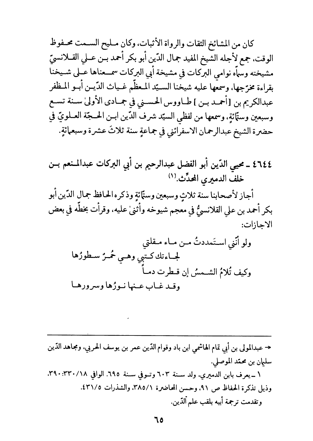 (¬1) يعرف بابن الدميري، ولد سنة 603 وتوفي سنة 695.الوافي 330/ 18: 390، وذيل تذكرة الحفاظ ص 91، وحسن المحاضرة 385/ 1، والشذرات 431/ 5. وتقدمت ترجمة أبيه بلقب علم الدّين.