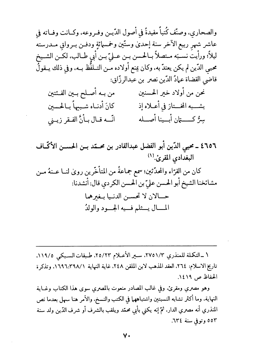 4656 - محيي الدّين أبو الفضل عبد القادر بن محمّد بن الحسن الأكّاف