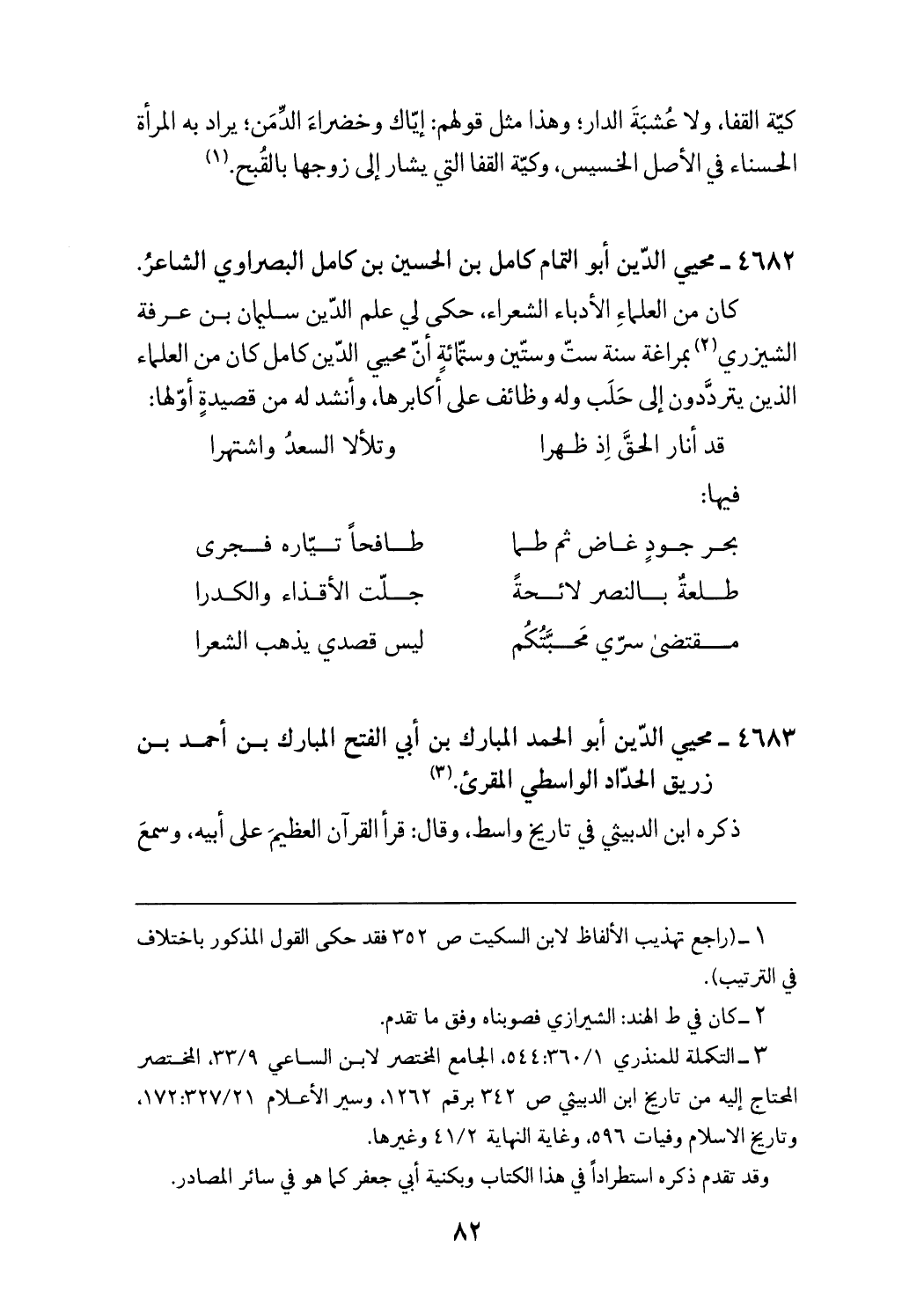 4682 - محيي الدّين أبو التمام كامل بن الحسين بن كامل البصراوي الشاعر.