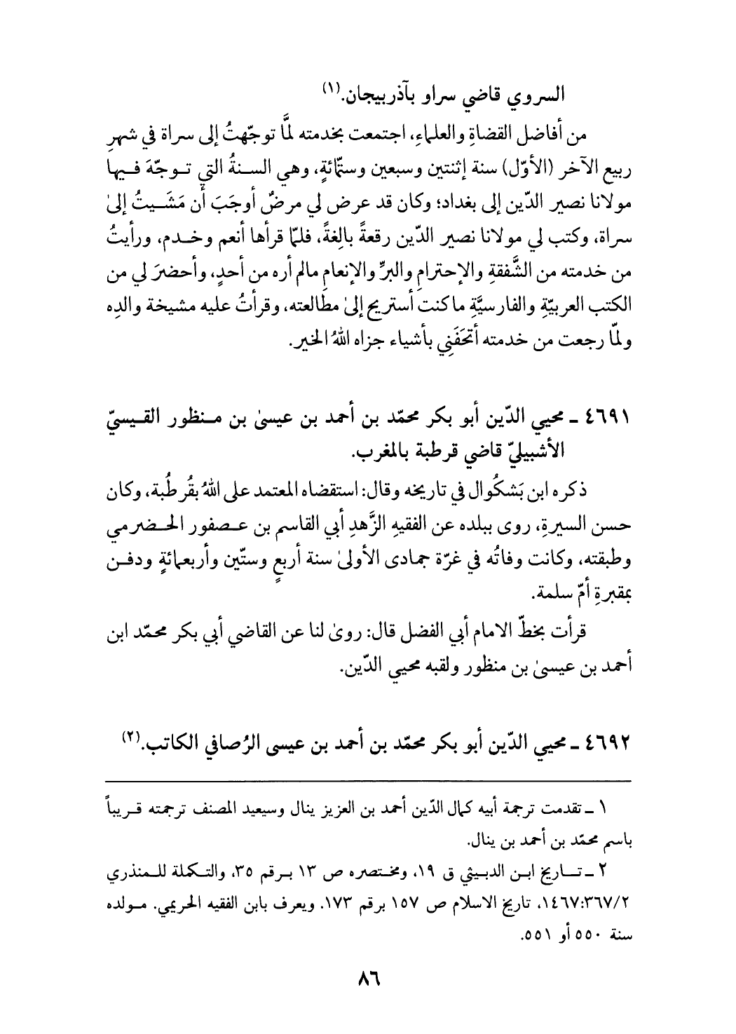 4691 - محيي الدّين أبو بكر محمّد بن أحمد بن عيسى بن منظور القيسيّ