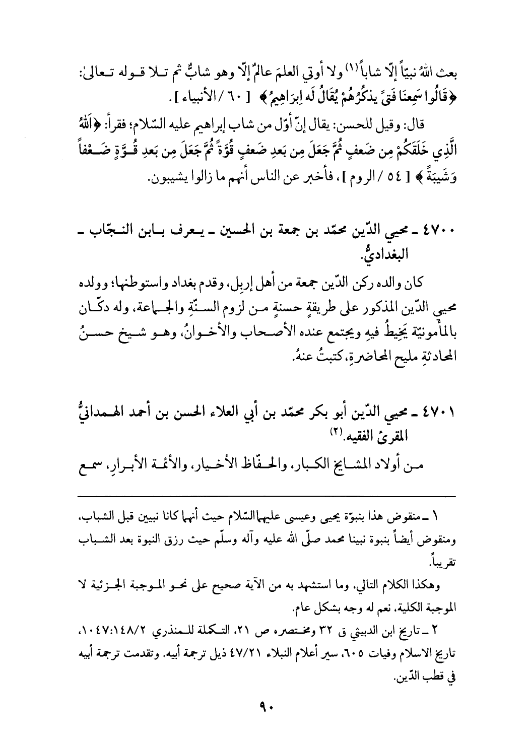 4700 - محيي الدّين محمّد بن جمعة بن الحسين - يعرف بابن النجّاب -