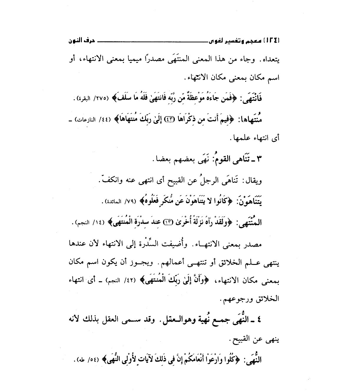 النهي: (كُلُوا وَارْعَوْا أَنْعَامَكُمْ إِنَّ فِي ذَلِكَ لآيَاتٍ لأُوْلِي النُّهَى) "54/طه".