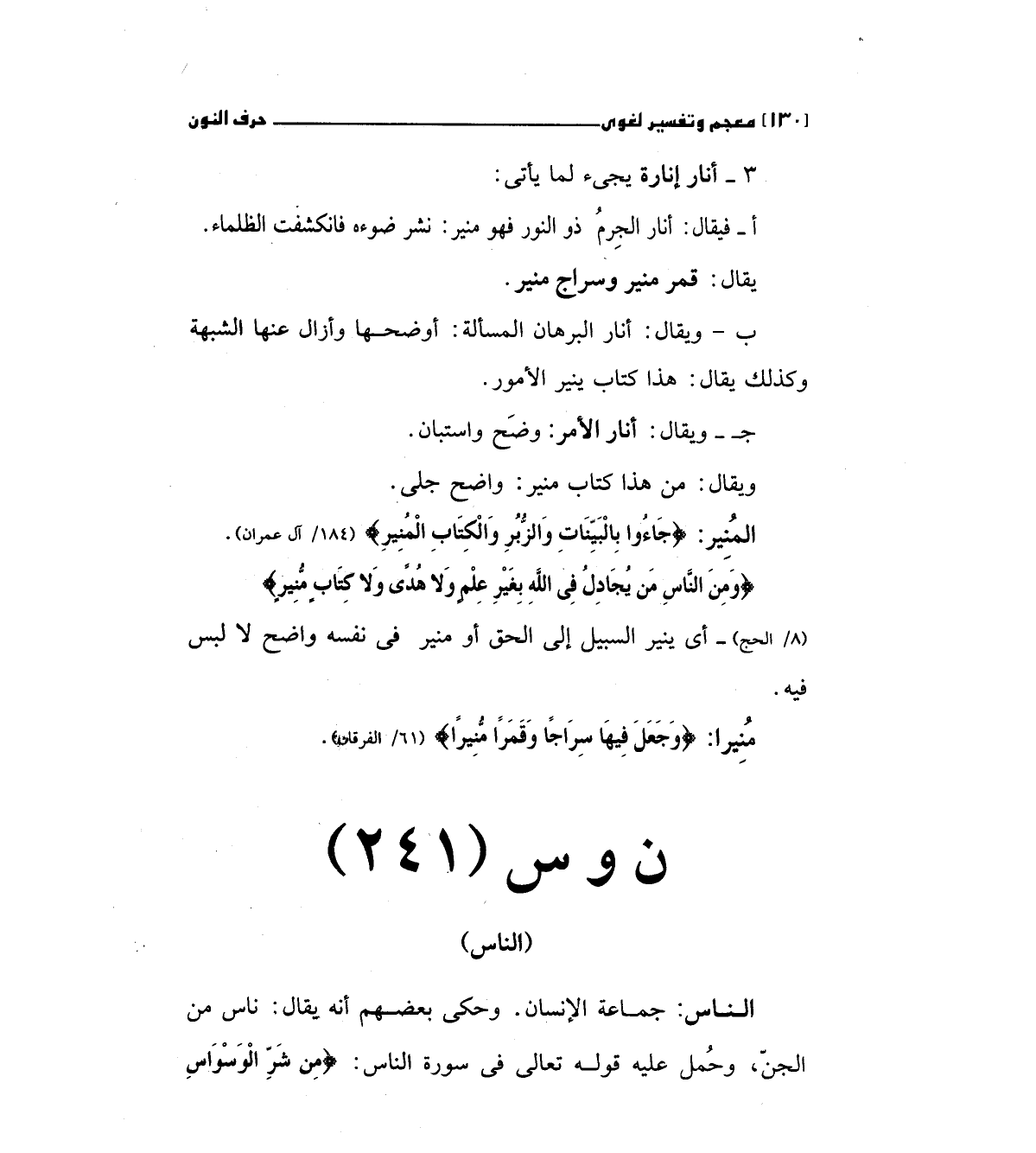المنير: (جَاءُوا بِالْبَيِّنَاتِ وَالزُّبُرِ وَالْكِتَابِ الْمُنِيرِ) "184/آل عمران ".