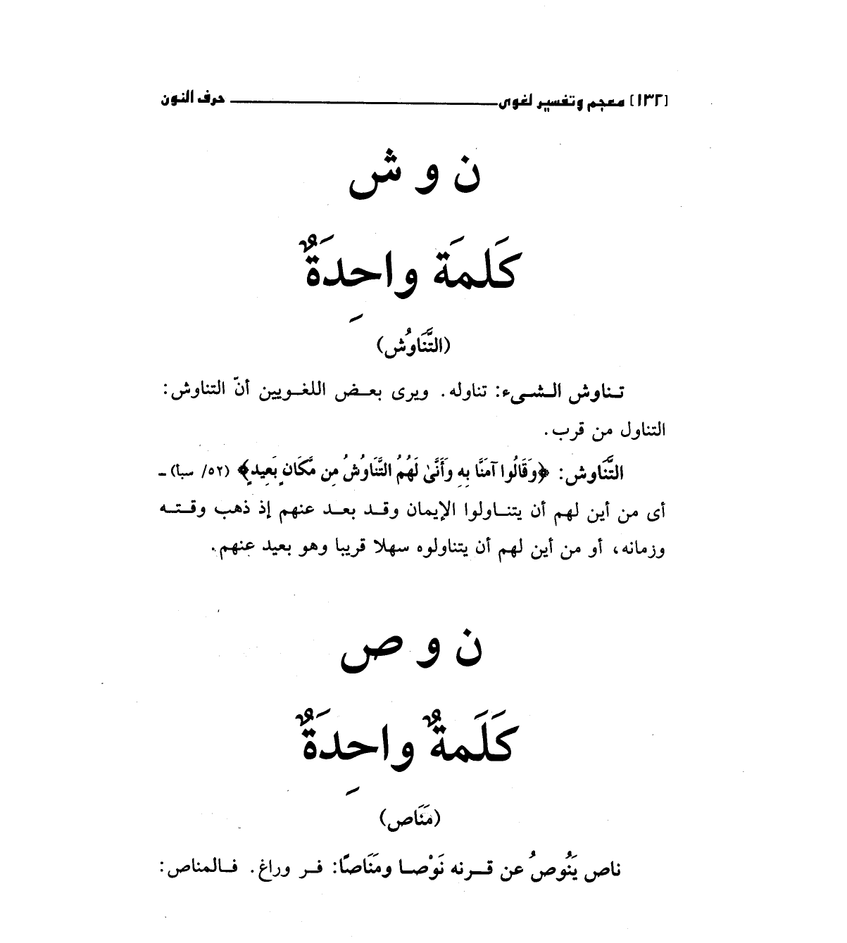 تناوش الشئ: تناوله ويري بعض اللغويين أن التناوش التناول من قرب.