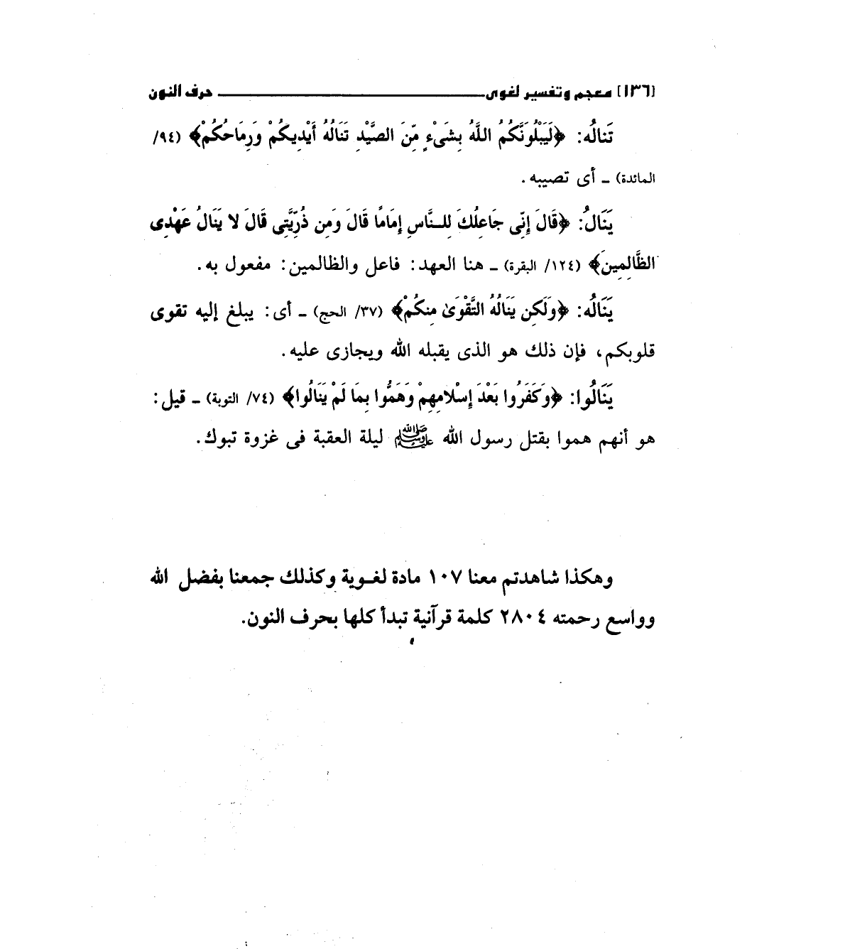 وهكذا شاهدتم معنا 107مادة لغوية وكذلك جمعنا بفضل الله وواسع رحمته 2804 كلمة قرآنية تبدأ كلها بحرف النون.
