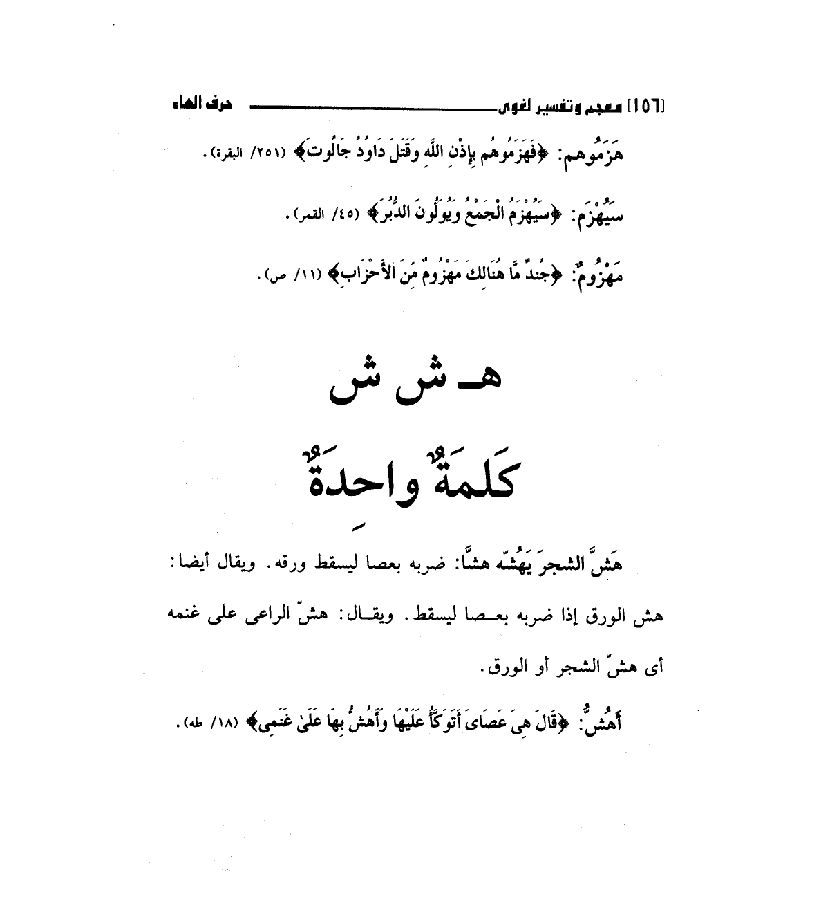 أهش: (قَالَ هِيَ عَصَايَ أَتَوَكَّأُ عَلَيْهَا وَأَهُشُّ بِهَا عَلَى غَنَمِي) " 18/طه".