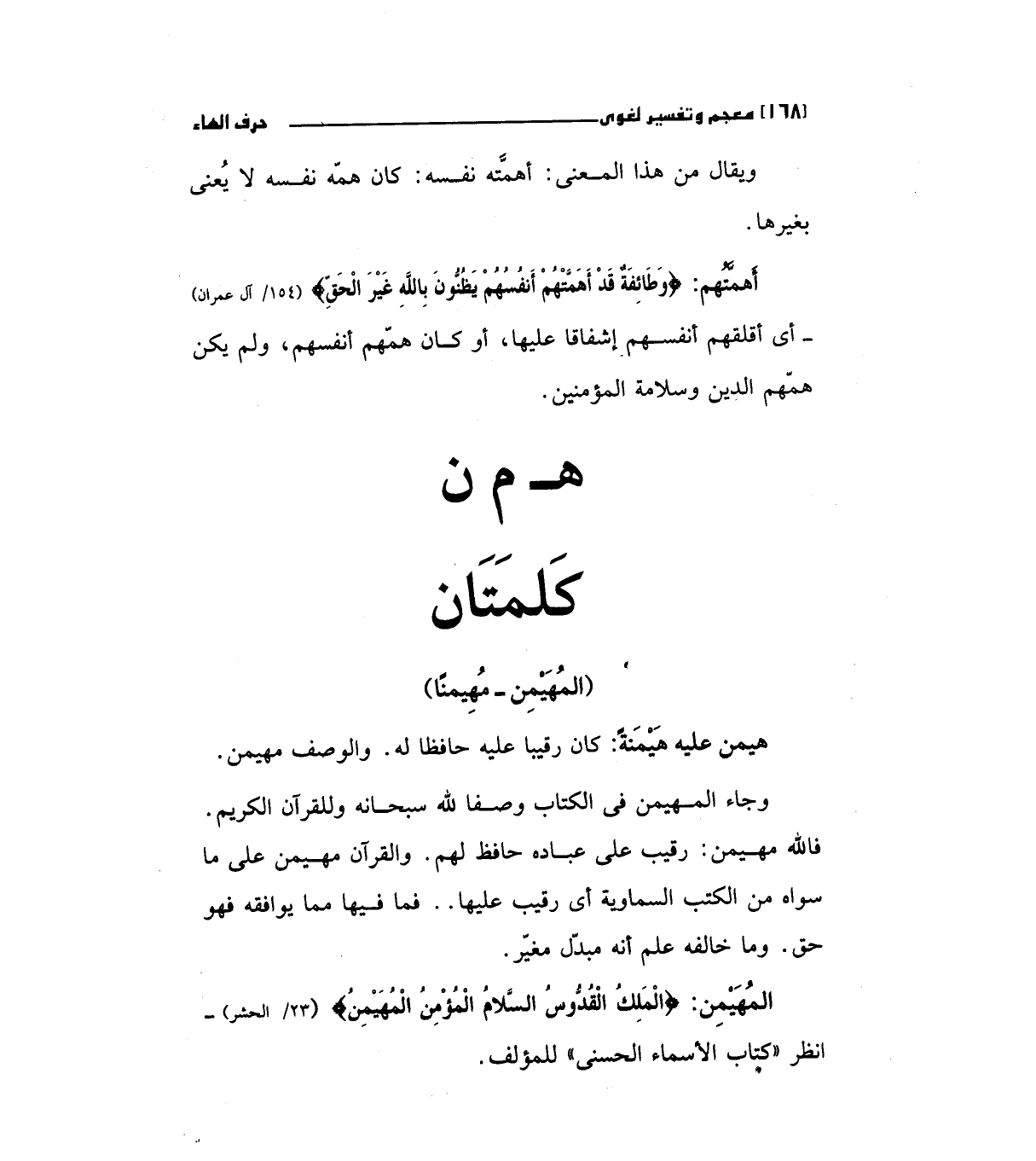 المهيمن: (الْمَلِكُ الْقُدُّوسُ السَّلامُ الْمُؤْمِنُ الْمُهَيْمِنُ) " 23/الحشر ". انظر كتاب الأسماء الحسني " للمؤلف.