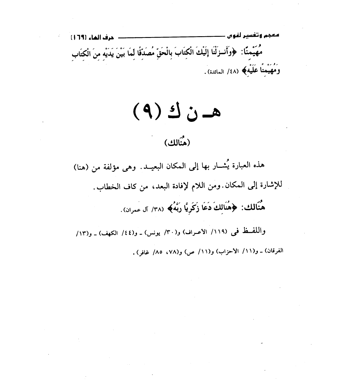 هذه العبارة يشار بها إلي المكان البعيد وهي مؤلفة من (هنا) للإشارة إلي المكان ومن اللام لإفادة البعد، من كاف الخطاب.