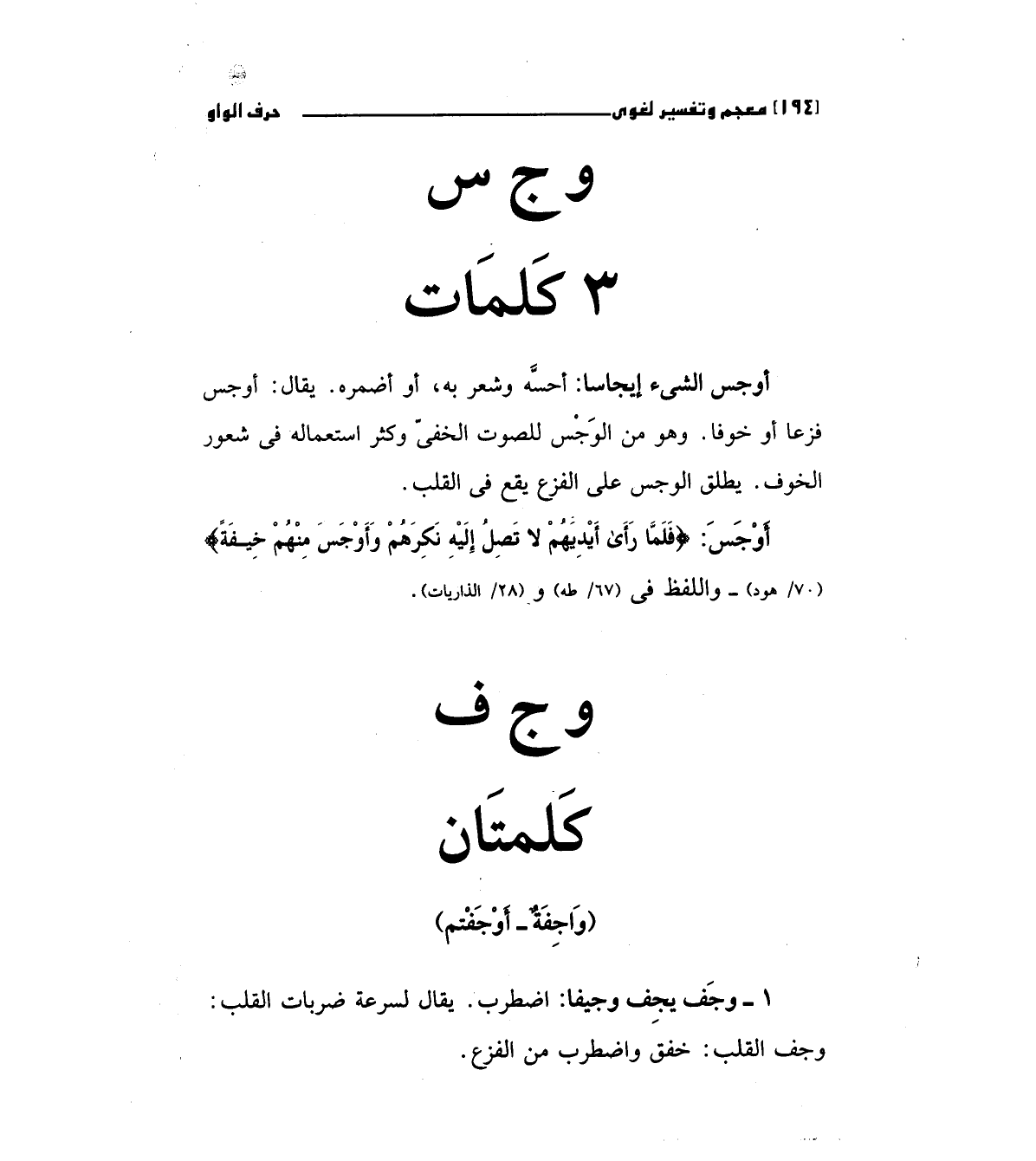 أوجس: (فَلَمَّا رَأَى أَيْدِيَهُمْ لا تَصِلُ إِلَيْهِ نَكِرَهُمْ وَأَوْجَسَ مِنْهُمْ خِيفَةً) " 70/هود " واللفظ في " 67/طه" و " 28/الذاريات ".