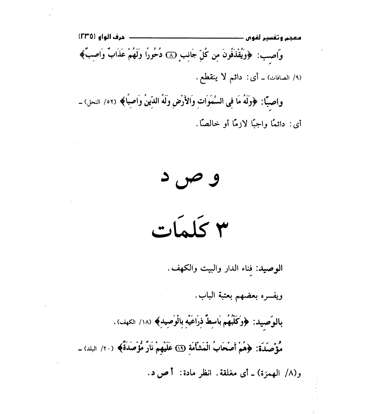 بالوصيد: (وَكَلْبُهُمْ بَاسِطٌ ذِرَاعَيْهِ بِالْوَصِيدِ) " 18/الكهف"
