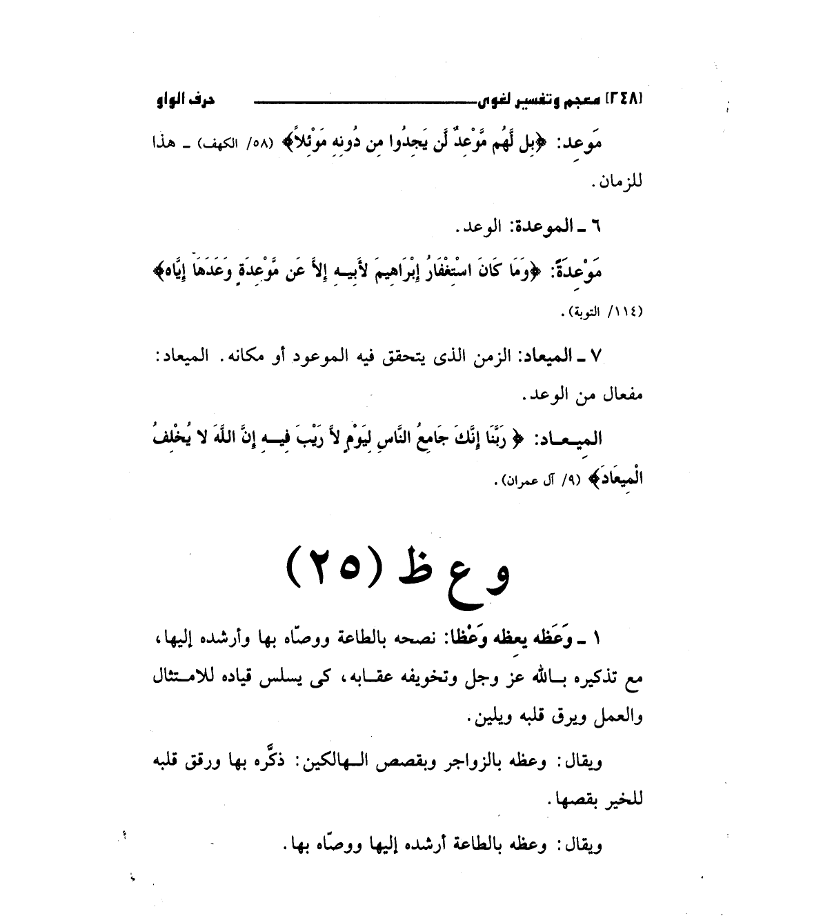 1 - وعظه يعظه وعظا: نصحه بالطاعة ووصاه بها وأرشده إليها، مع تذكيره بالله عز وجل وتخويفه عقابه، كي يسلس قيادة للامتثال والعمل ويرق قلبه ويلين.