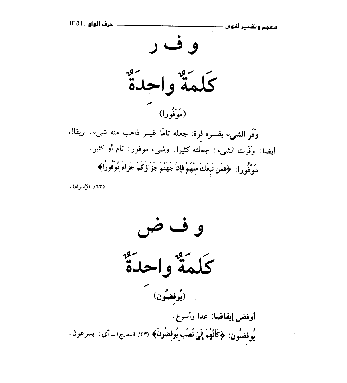 موفورا: (فَمَنْ تَبِعَكَ مِنْهُمْ فَإِنَّ جَهَنَّمَ جَزَاؤُكُمْ جَزَاءً مَوْفُوراً) " 63/الإسراء".